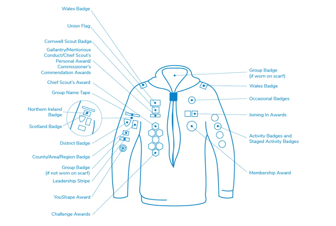 Below is a labelled diagram showing the correct positioning of badges on a Beaver jersey. For more info please visit our blog - https://shop.scouts.org.uk/2018/06/20/badge-placement-2